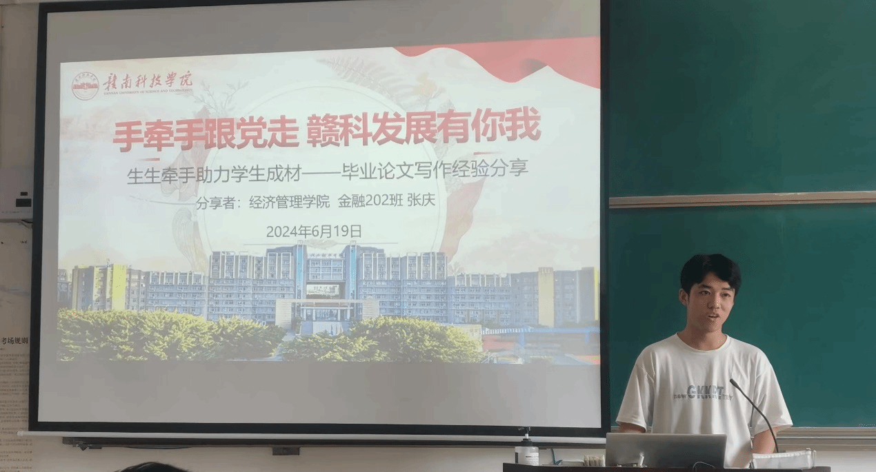 本网讯:6月19日上午,taptap点点金融学专业在主教228教室开展主题为“手牵手跟党走,赣科发展有你我——生生牵手助力学生成材”的毕业论文写作经验分享活动。活动邀请金融专业优秀毕业论文候选人张庆同学为2021级金融学生分享毕业论文写作经验与心得,活动由金融教研室主任郑延智主持,胡佳老师参与。