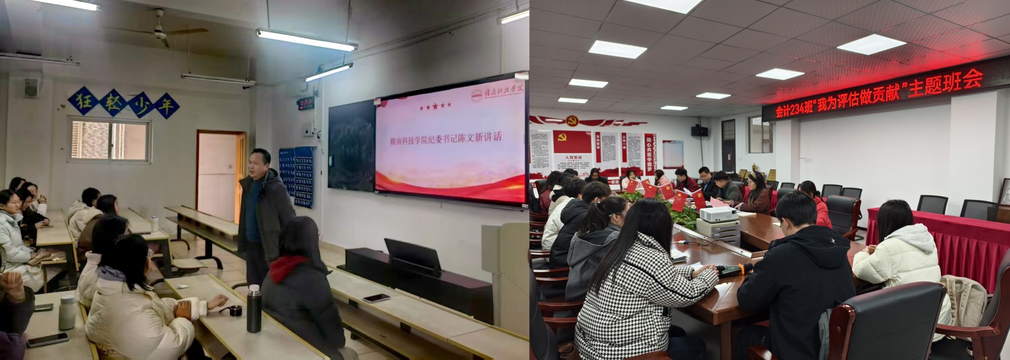 各班班主任、辅导员详细介绍了本科教学工作评估对学校发展的深远意义。评估不仅是对学校教学质量、师资队伍建设、人才培养模式等方面的全面检验,更是推动学校持续改进、提升办学水平的重要契机。通过互动环节,同学们围绕 “我能为评估做什么” 展开热烈讨论。有的同学提出要从自身做起,端正学习态度,以饱满的精神状态投入日常学习中,展现良好的学风;有的同学表示将积极参与校园文化活动,提升综合素质,为学校精神文明建设添砖加瓦;还有同学提议加强宿舍卫生管理,营造整洁、舒适的生活环境,彰显学院学生的良好风貌。