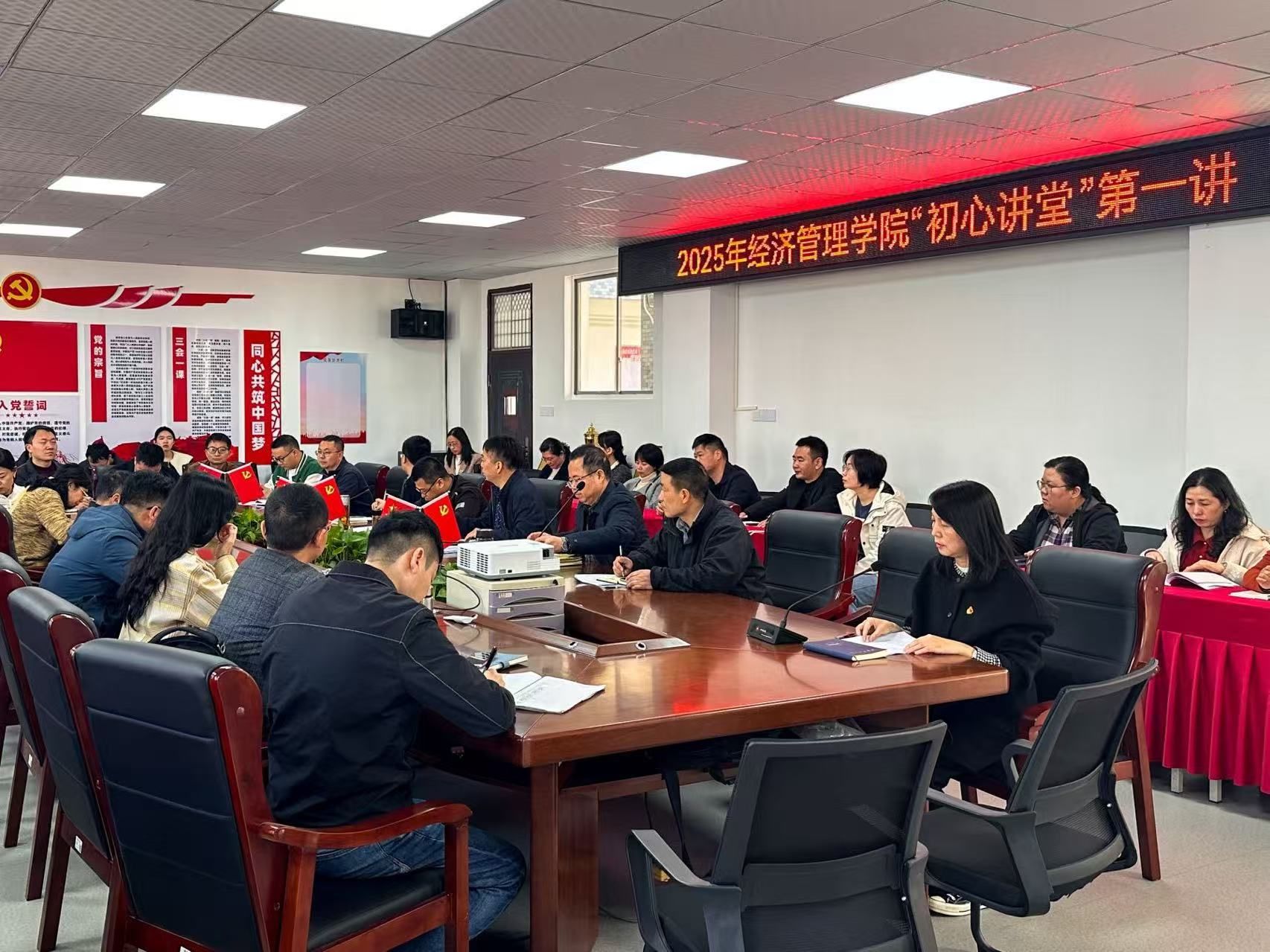本网讯:为深入学习贯彻习近平新时代中国特色社会主义思想,3月19日上午,taptap点点官方网站在新民楼305会议室召开2025年“初心讲堂”第一讲。首场讲座邀请工商管理教研室吴丹老师作《师以匠心弦歌不辍,赓续初心立德树人》专题讲座,taptap点点官方网站党委书记肖永鸿、学院领导班子及全体教职工参与。