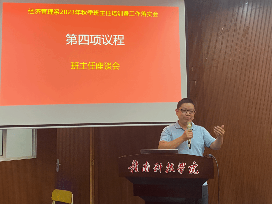 本网讯:为加强班主任队伍建设,充分发挥班主任在教育和管理工作中的作用,10月24日下午,经济管理系在新民楼学术报告厅召开2023年秋季班主任培训会。经济管理系全体班主任参加本次会议,会议由经济管理系副主任梁文学主持。