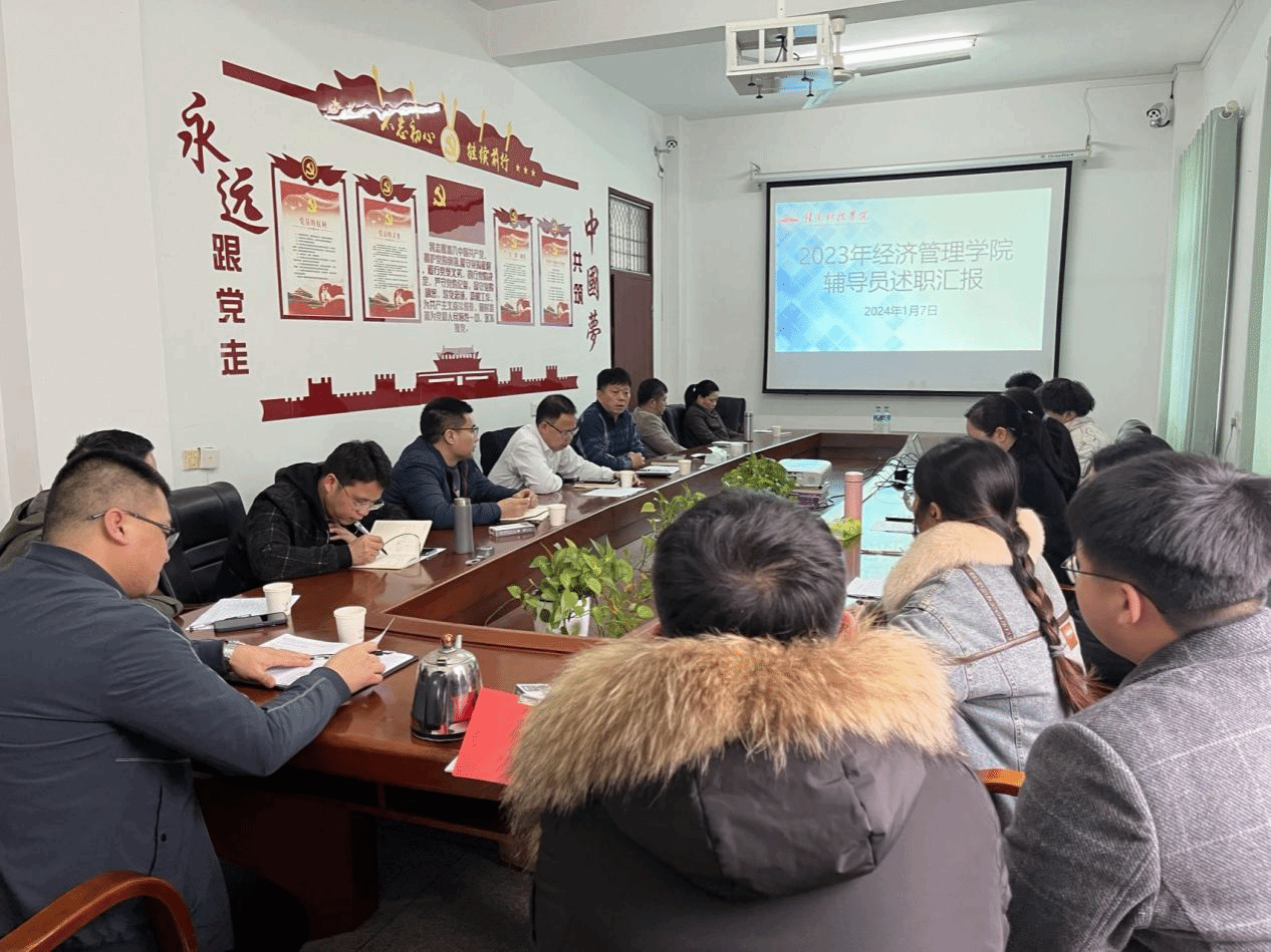 本网讯:为促进辅导员之间的工作交流,持续深化辅导员队伍建设,推动学生工作管理水平高质量发展,经济管理系于1月7日下午在2教309会议室开展2023年度辅导员工作述职大会。taptap点点官方网站党委书记肖永鸿,系领导班子钟滨、王波、梁文学以及各教研室主任担任评委,taptap点点官方网站全体辅导员参加本次述职。