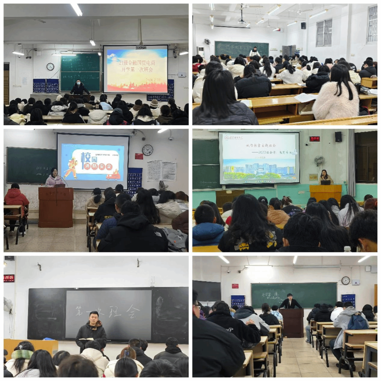 随后,辅导员们针对所带班级的特点,结合“开学第一课”的相关内容,召开了新学期第一次主题班会。在班会上,辅导员重点强调了学生的安全问题,包括消防安全、食品安全、交通安全、预防电信诈骗、心理健康等内容。同时,针对下周的补考事宜,再一次重申了考场纪律以及作弊的相应处理,警醒学生诚信应考。