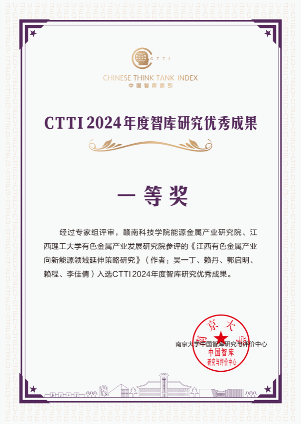 【重磅】能源金属产业研究院荣获2项CTTI智库优秀成果一等奖