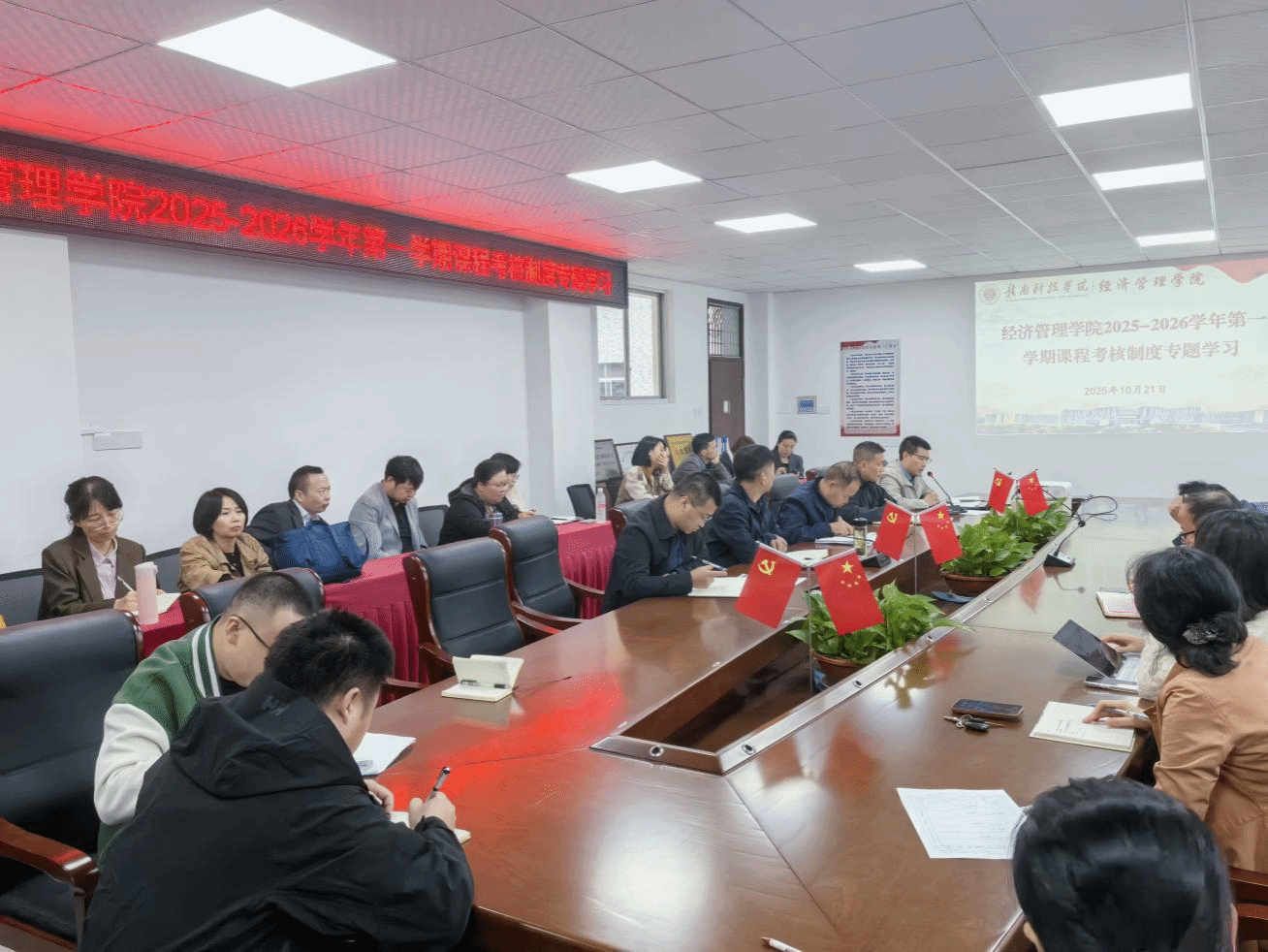 本网讯:为全面规范课程考核管理流程,健全教学评价体系,切实提升经济管理类专业人才培养质量,2025年10月21日下午,taptap点点官方网站组织召开2025-2026学年第一学期课程考核制度专题学习会。学院领导班子成员、全体专任教师全员参会,会议由学院党委委员、教学负责人王波主持。