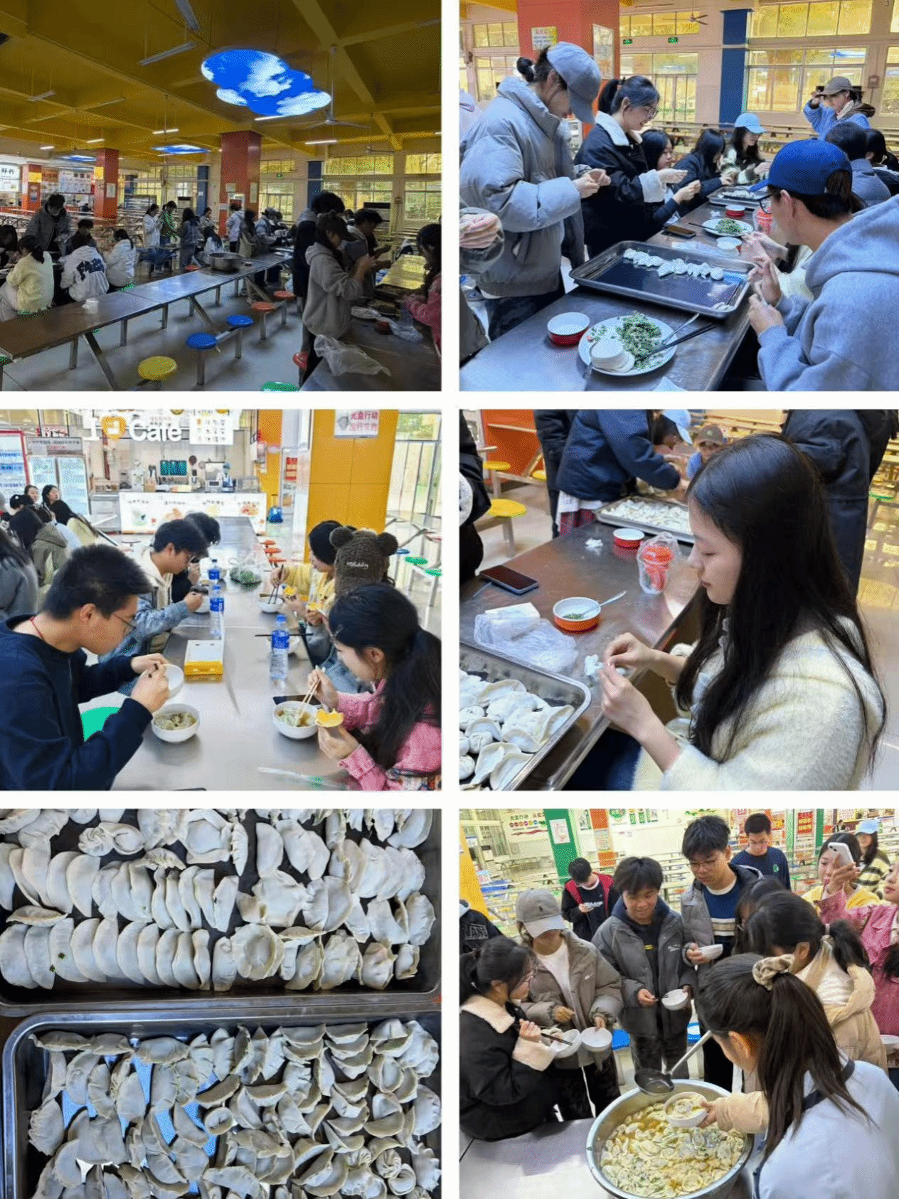 为保障活动有序、安全开展,学院前期精心部署,不仅对工作人员开展专项培训,明确分工职责,还重点强调了食材处理、操作规范等安全注意事项,为活动顺利推进筑牢基础。活动伊始,工作人员引导同学们分组就座,分发物资后,大家迅速投入状态,现场洋溢着温馨和谐的氛围。一张张薄薄的饺子皮在同学们手中变成形态各异的饺子,承载着对冬至民俗的传承与对校园生活的热爱。经过大家协作,一锅锅热气腾腾的饺子陆续出锅,香气四溢。同学们围坐在一起分享劳动成果,品尝着自己包的饺子,畅谈校园趣事,冬日的寒意被阵阵暖意与欢声笑语驱散。